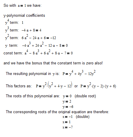 Horizontal asymptote means set x to infinity so \(f(x)\rightarrow a\) hence we immediately have \(a=-4\)