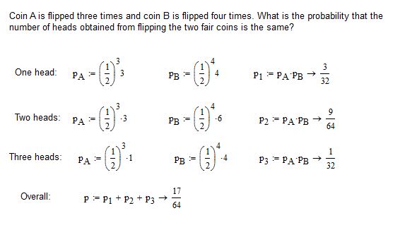 "Coin A is flipped three times and coin B is flipped four times. What is the probability that the number of heads obtained from flipping the two fair coins is the same?"