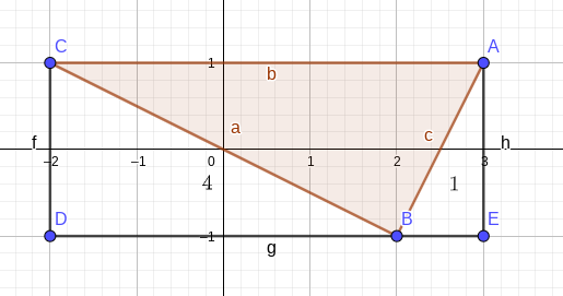 Using the Pythagorean Theorem, we find that the lines of the triangle bounded by the 2 lines and x= 1 are \(2\), \(\sqrt 5 \), and \(\sqrt {18}\).