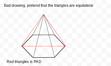 PAD is an equilateral triangle with a length of 6, this means that the hexagon base is 6 inches long in total.