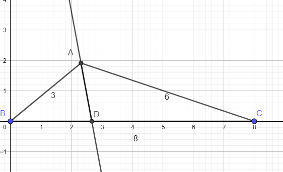 So BD = (1/3)BC = (1/3)(8) = 8/3