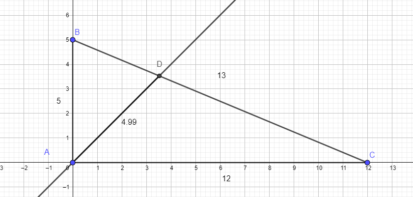 Thus there are (12 +5) = 17 equal parts to BC so CD is (12/17) *13 = 156/17