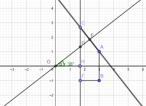 Angle OGH = 90 - 38 = 52° = Angle EGC