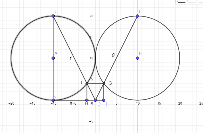 The equation of the circle with its ceenter at A is ( x+10)^2 + ( y - 10)^2 = 100 (2)