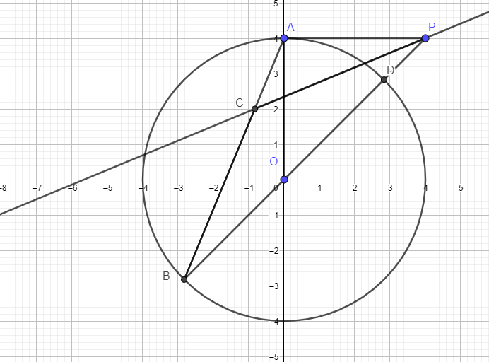 A perpendicular through (10, 9) will have a negative reciprocal slope = -3/4