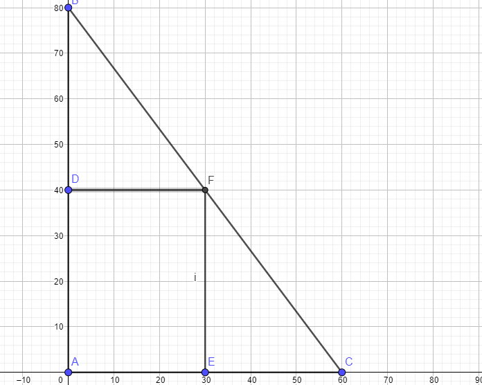 And the equation of a line theorugh this segmnt has the equation y = (-4/3) ( x - 60)