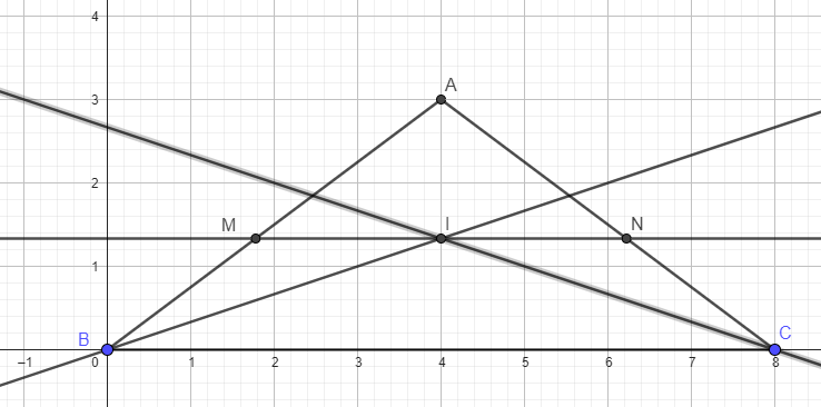 Since AB = AC, the triangle is isosceles and A = (BC/2, y) = (8/2, y) = (4,y)