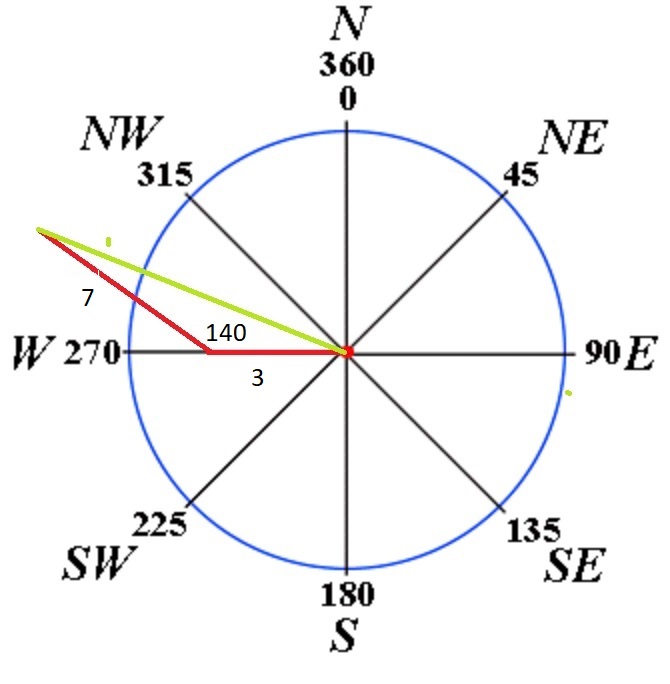 Here is a picture.... You are trying to find the green line distance ( Hint: Cosine law)