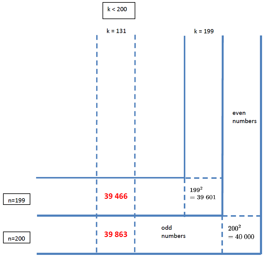 1. \(\begin{array}{|rcll|} \hline \sqrt{39863} &=& 199.657\ldots \\ n_{min} &=& 199 \\ n_{max} &=& 200 \\ \hline \end{array}\)