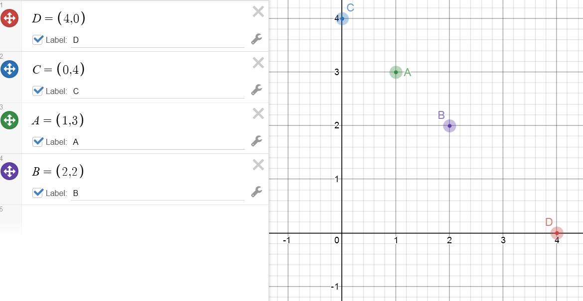 Let us have four distinct collinear points A, B, C and D on the Cartesian plane.