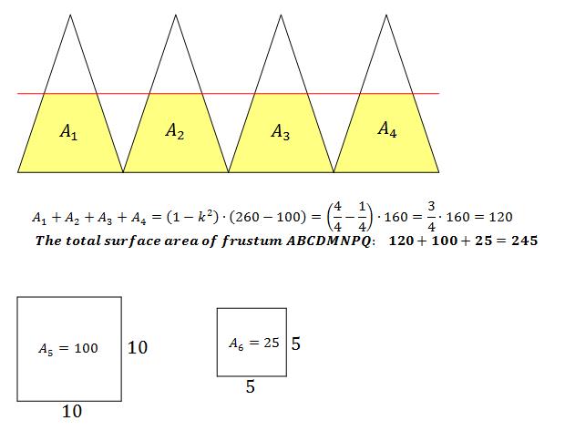 Let M, N, P, and Q be the midpoints of AE, BE, CE, and DE, respectively. Find the total surface area of frustum ABCDMNPQ.