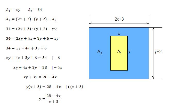 I have a picture with dimensions x and y (in inches), such that x and y are both integers greater than one. I would like to place this picture in an elongated frame of dimensions (2x + 3) and (y+2). If I measured the area of the frame to be 34 square inches, what is the area of the picture in square inches?