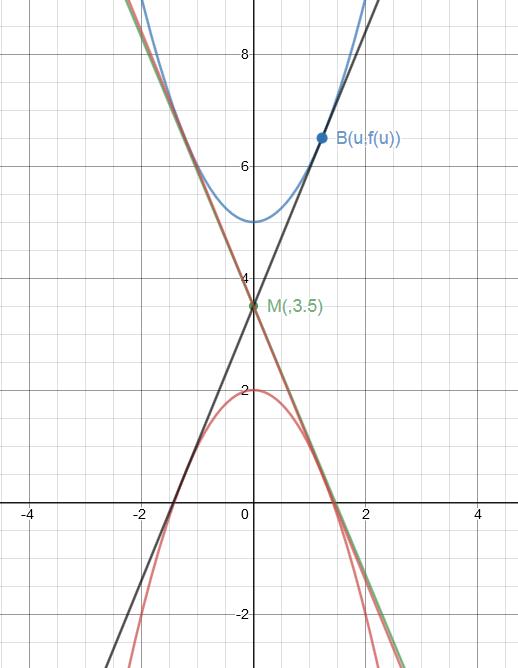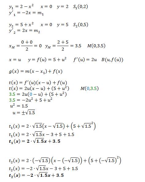 Given the two parabolas y = 2 - x^2 and y = 5 + x^2, determine the equations of all common tangents.