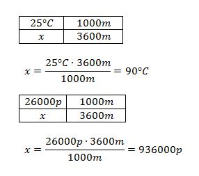 Die Temperatur in der Erdkruste steigt um 25C pro 1000 Meter Tiefe und der Druck steigt um 26000 Pascal pro Kilometer. Berechnen Sie den Druck und die Temperatur in einem Sediment, das unter 3600 Metern anderer Gesteine liegt.