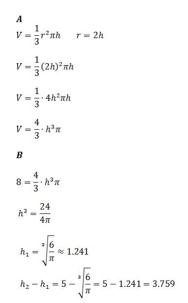 Grain is falling into from a conveyor into a conical pile at a rate of 8 cubic feet per minute. The diameter of the pile is four times the height of the pile.