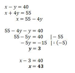 The difference between two numbers is 40. The first number and four times the second number is 55. Find the two numbers and show your work.