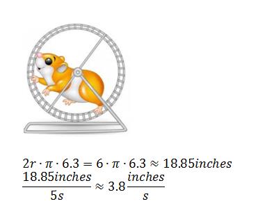 A hamster runs in its wheel whose radius is 3 inches. The wheel completes 6.3 revolutions in 5 seconds.