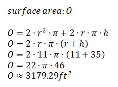 John's farm silo is a right cylinder that is 35 feet high. Both the top and bottom base have a diameter of 22 feet. What is the approximate surface area of the metal used to make the silo?