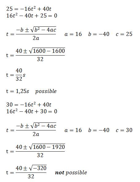 The equation h = -16t^2 + 40t models the altitude a football will reach t seconds after it is kicked.