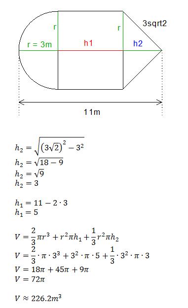 Find the approximate volume of the figure below, composed of a cone, a cylinder, and a hemisphere. If necessary, round your answer to the nearest tenth.