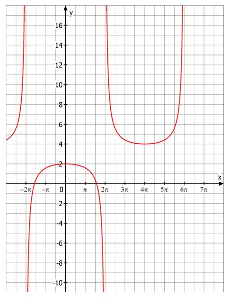 Graph the function f(x)=-sec(x/4)+3 on the interval [-2π,6π].