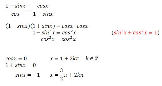 Prove the identity (1 - sin x)/(cos x) = (cos x)/(1 + sin x). Are there any x for which the equation does not hold?