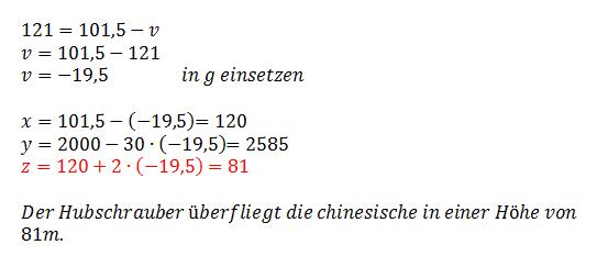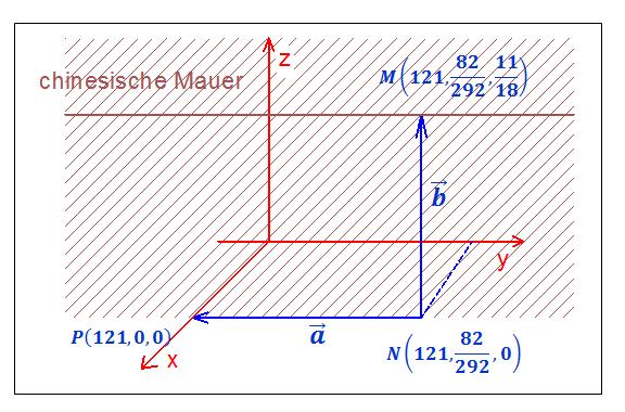 Hallo, meine Idee ist mit einer Hilfsebene zu arbeiten. Sie verläuft parallel zur y-Achse entlang der chinesischen Mauer. Die Hubschraubergerade