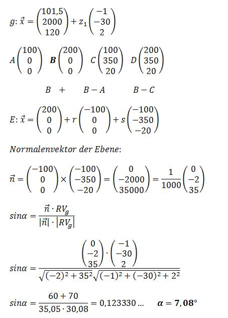 Schnittwinkel zwischen Ebene und Gerade:https://www.youtube.com/watch?v=q0f3vaaXKmc