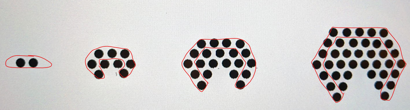 Klar - wir schauen uns zunächst an, was in jedem Schritt dazukommt, und versuchen, das irgendwie in Abhängigkeit von n (Nummer des Folgenglieds) darzustellen.