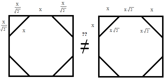 Finally, (the area of the square) - (area of the four triangles = (area of the octagon).
